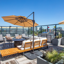 Landscaped, secured rooftop terrace updated in 2022 with grills, outdoor TV, and fire pit